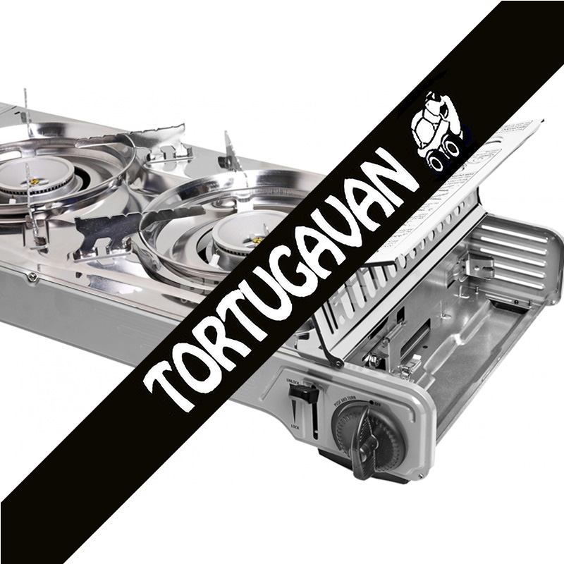 Cocina 2 fuegos a cartucho de gas con plancha de aluminio fundido.