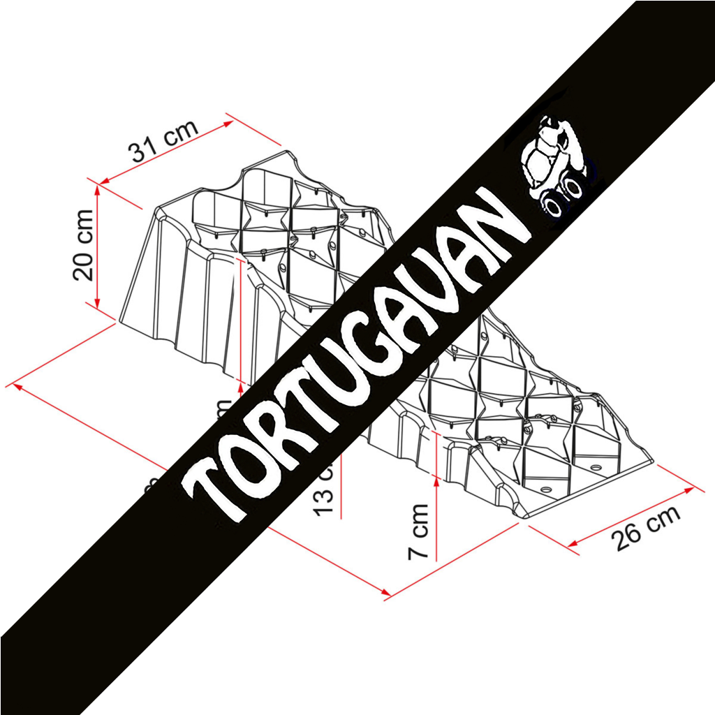 La nueva cuña Fiamma con tres alojamientos de nivelación colocados a 7, 13 y 17 cm. La relación entre la superficie de contacto con el terreno y el neumático garantiza unas magníficas prestaciones sobre terrenos inestables y permite proteger el neumático de deformaciones gracias a la amplia superficie de apoyo y a los alojamientos moldeados. La nueva estructura se ha diseñado para satisfacer las exigencias de retención de carga y adaptabilidad del producto a terrenos desconocidos. El cómodo asa trasera permite transportar con facilidad la cuña a pesar de sus mayores dimensiones. Sumamente ligera en comparación con otros productos similares. Se distingue por sus magníficas prestaciones en cualquier tipo de terreno.