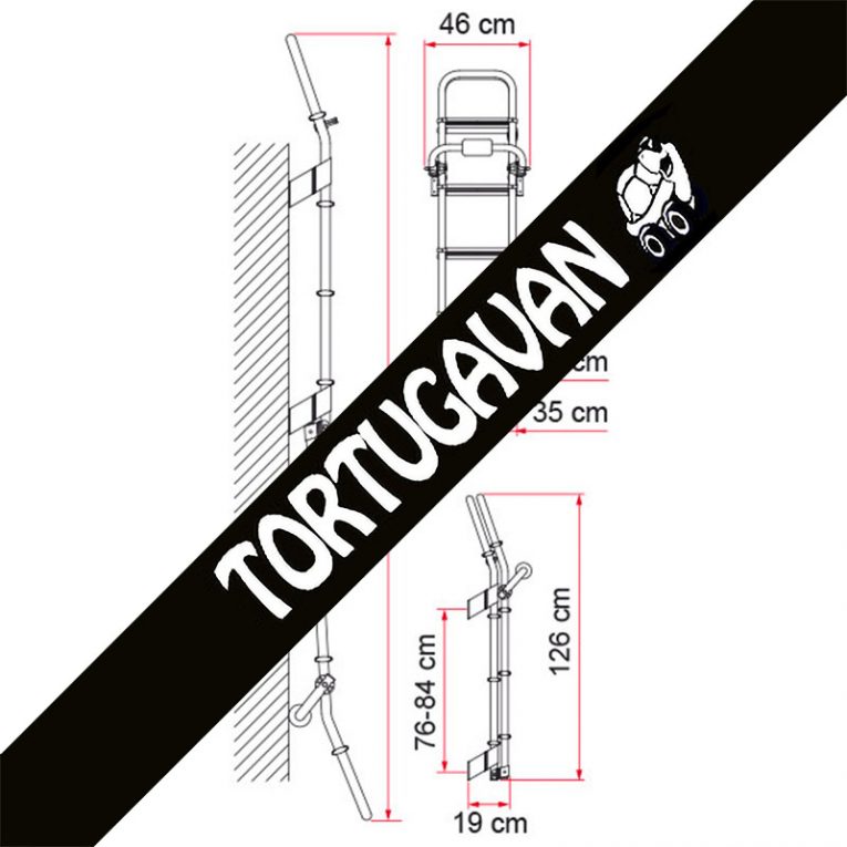 Robusta y ligera escalera exterior para autocaravanas con 8 peldaños.